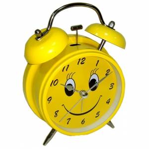 Оригинальный будильник. Встроенная подсветка (включается кнопкой на задней напели). Питание от 2-х батареек типа АА. Механизм хода обычный, тикающий.